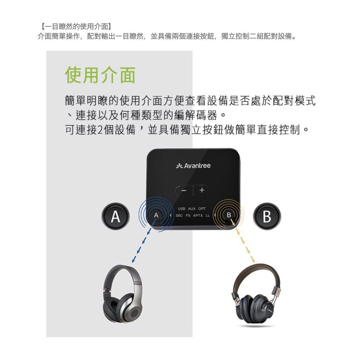 【Avantree TC418P 一對二低延遲藍牙音樂發射器】