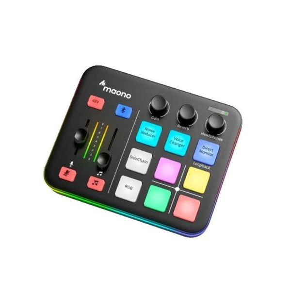 The Maonocaster G1 Neo Gaming Audio Mixer is the newest innovation in the acclaimed Maonocaster series. Featuring an eye-catching RGB lighting design, the G1 Neo delivers superior audio performance while enhancing the visual appeal of your gaming and streaming setup. Its compact design allows for seamless integration into any workspace. enjoy game streaming at ease.