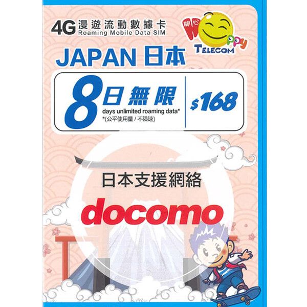 Happy Telecom 日本 docomo 8日不限速無限數據卡