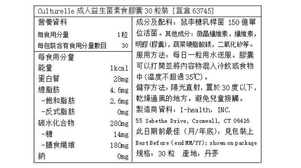 成人益生菌素食膠囊 30 粒【平行進口】Culturelle