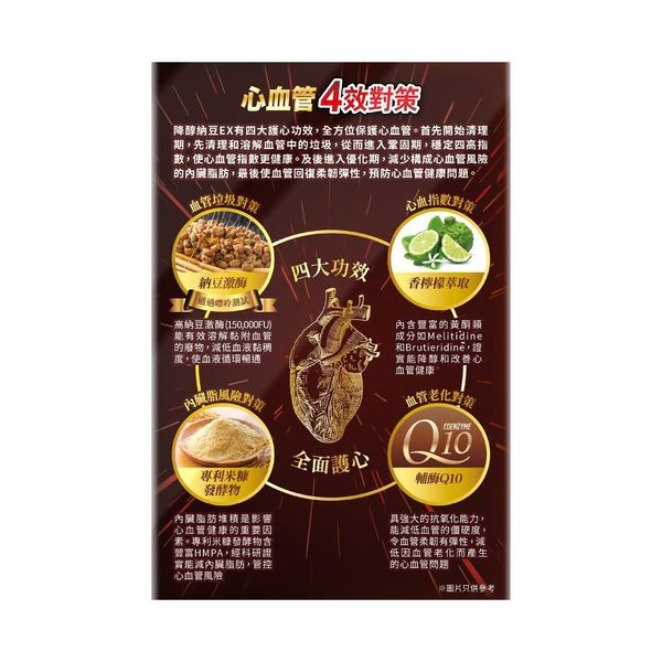 香檸檬萃取,納豆激酶,羥丙基甲基纖維素,增稠劑(1400),抗結劑(470),純化水,專利米糠發酵物,輔酶Q10,酵母鉻,抗結劑(551)