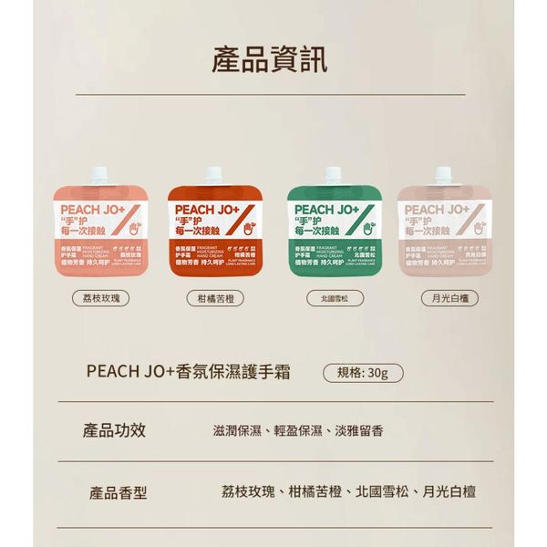 PEACH JO+ 香氛保濕護手霜30g(72小時長效鎖水|大師級香水調香)(限時優惠一套4款 x2套 )