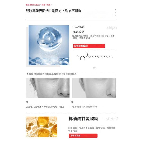 ▸ 胺基酸表活劑深入毛孔吸油,清潔力較皂基強3倍,溫和度提升200%