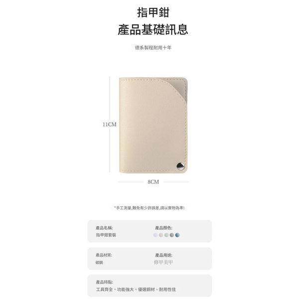 :包含指甲鉗、斜口鉗、死皮剪等,輕鬆應付硬甲、倒刺、甲縫清潔,一套搞定全方位修甲需求。