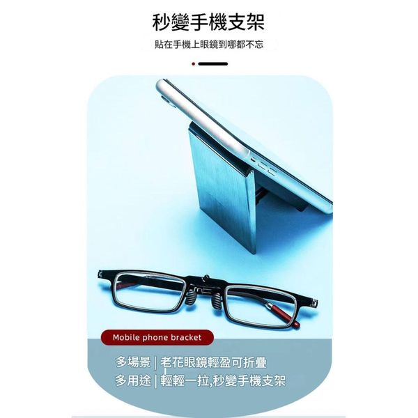防藍光折疊老花眼鏡 + 手機支架二合一 — 護眼閱讀,隨身攜帶超方便!