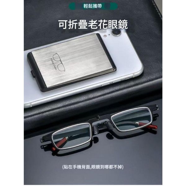 附贈專用鏡盒(尺寸8.8*5.2*0.6cm),可黏貼在手機背面,眼鏡隨拿隨用不怕丟!