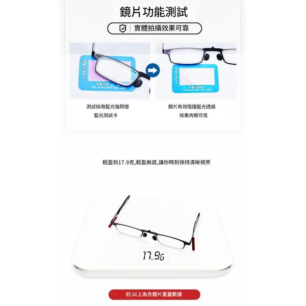 鏡架180°對折收納,僅重17.9克,放口袋、包包零負擔。