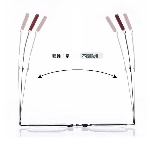 金屬合金鏡框+柔軟鏡腿,彈性十足不壓臉頰,長時間佩戴也舒適。