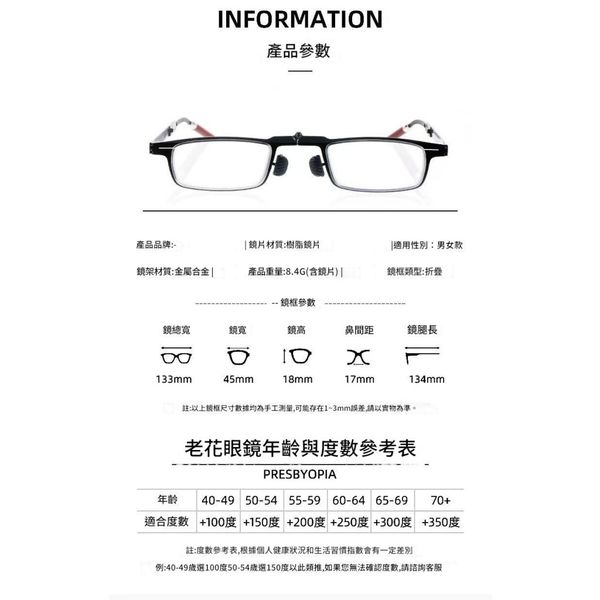 提供+100度至+350度多種規格,40歲以上依年齡輕鬆選配(附參考表)。
