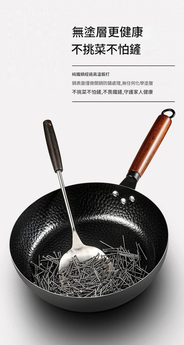 精選高純度鐵材,經高温鍛打及50多道工序匠心製作,無化學塗層,守護家人健康。