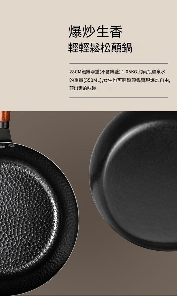 淨重僅約1.05KG(如兩瓶礦泉水),女生也能輕鬆顛鍋,享受爆炒樂趣。