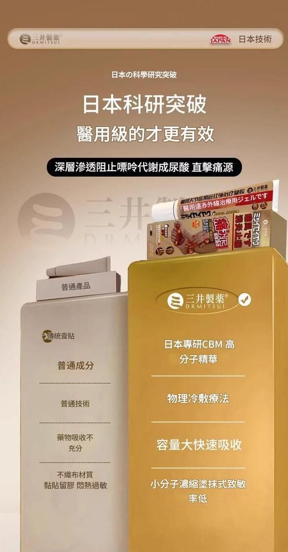 (結合冷敷、修復、止痛三大需求,強調科技成分與快速起效的優勢,適合痛風患者隨身備用。)