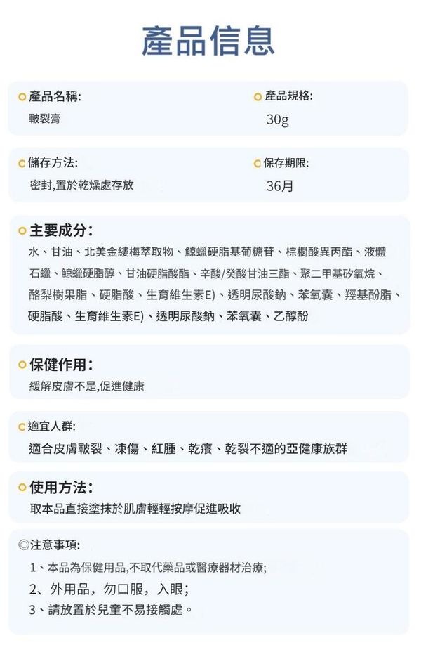 適用於秋冬乾燥、肌膚缺水易裂的亞健康人群,是家庭常備的肌膚護理良品!