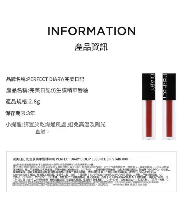 Perfect Diary 完美日記首創「仿生膜」精華唇釉2.8g