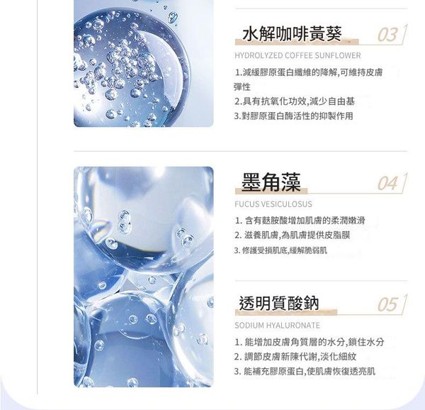 ✅ 水解咖啡黃葵 + 透明質酸鈉:增強皮膚彈性,深層補水鎖濕,撫平細紋