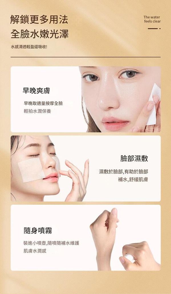 水感質地清爽不黏膩,可作為早晚爽膚水、局部濕敷,或裝入噴壺隨身補水,隨時維持肌膚水潤!