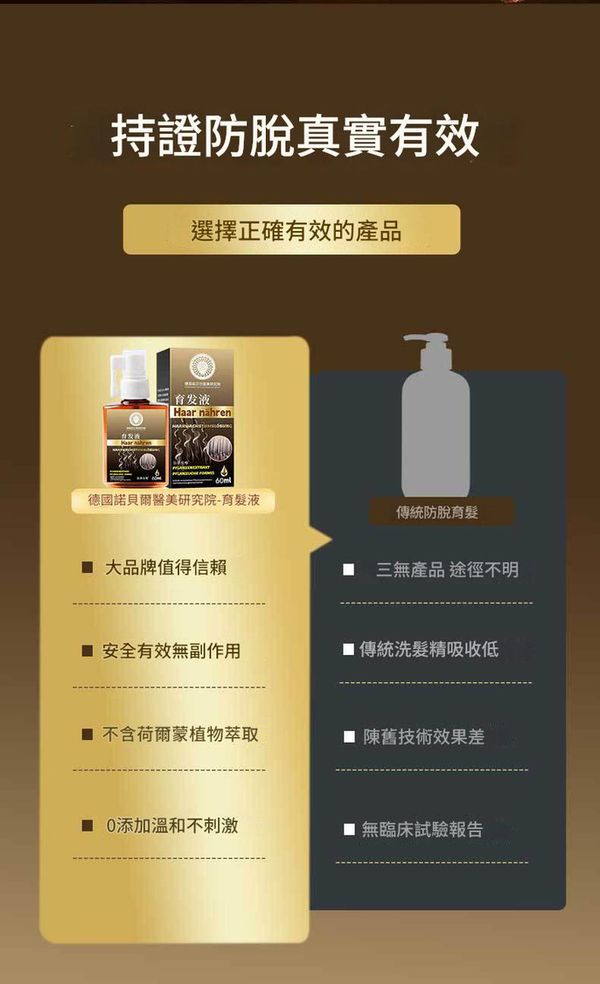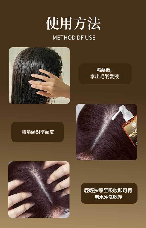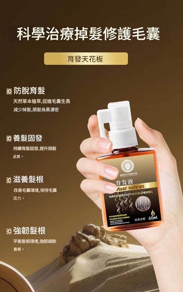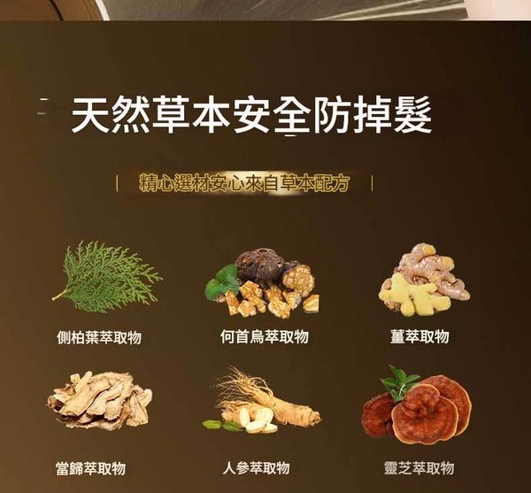 :嚴選側柏葉、何首烏、薑、當歸、人參及靈芝等多種植物萃取,溫和滋養,不含激素。