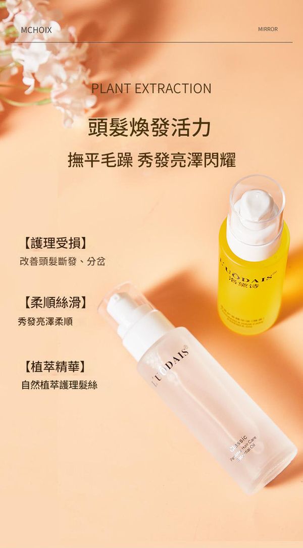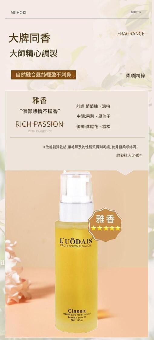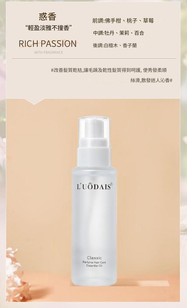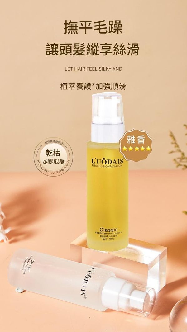 L'UÔDAIS 經典護髮精油,專為乾枯、毛躁、受損髮質設計,融合香氛藝術與植萃修護力,讓每一次護理都成為奢華享受。