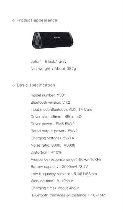 AWEI藍牙音箱/喇叭 Y331