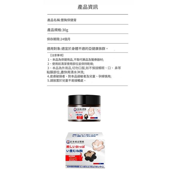 日本東京製藥豐胸膏產後胸部太小滋潤保濕煥齡外用保健膏30gX3
