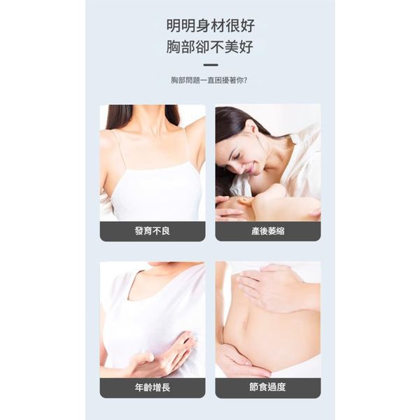 豐滿挺翹:長期使用促進胸部充盈,視覺增大1-2杯。