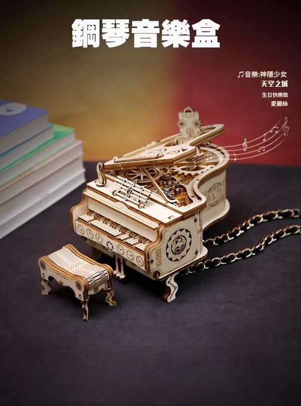 【3D立體木質拼圖・發條鋼琴音樂盒】(歌曲4選1)