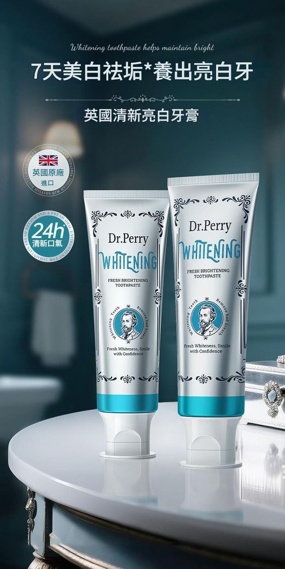 Dr.Perry 英國清新亮白牙膏,專為追求亮白笑容與口腔健康人士設計。採用三重拋光美白配方,結合三大護齦成分,溫和去除牙漬、牙菌斑,同時修護琺瑯質,讓您在7天內感受牙色明顯提亮,24小時保持口氣清新。