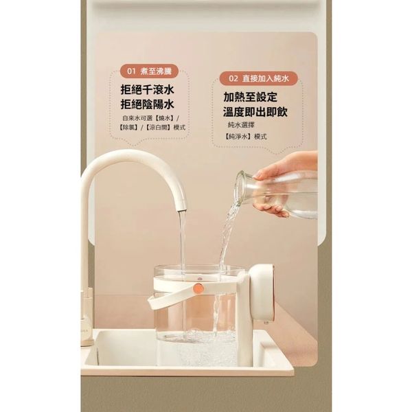 3 4大功能:燒水、除氯、純淨水、涼白開;雙煮水模式
