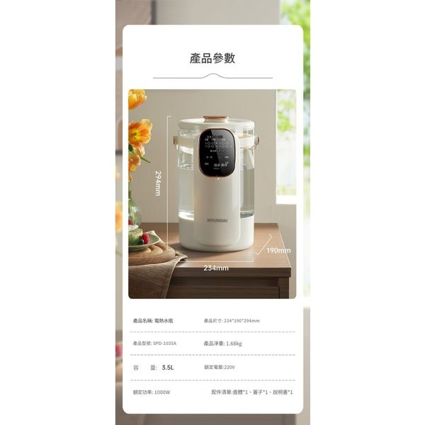 HYUNDAI 現代 雙層防燙保溫304不鏽鋼恆溫電熱水壺3.5L SPD-1035A