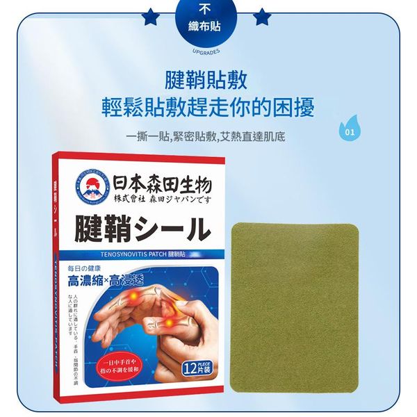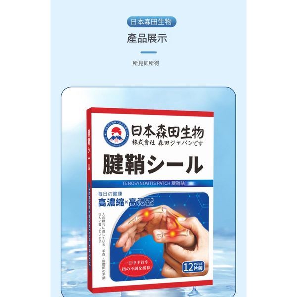 日本森田生物 手腕手指關節艾草腱鞘貼 12貼/盒 x2盒