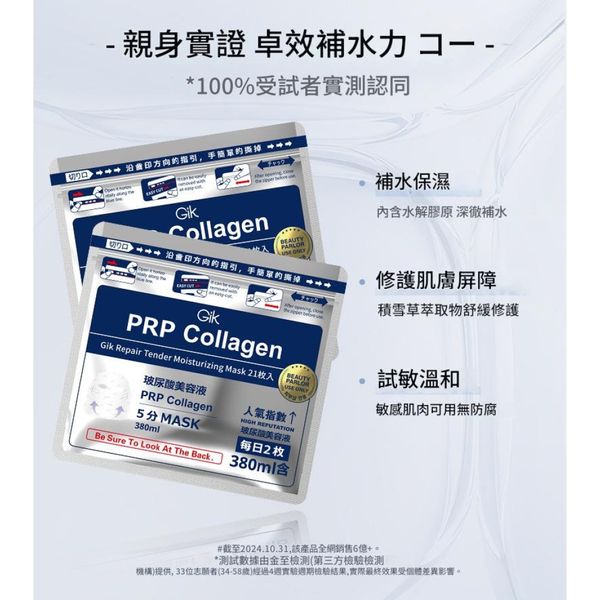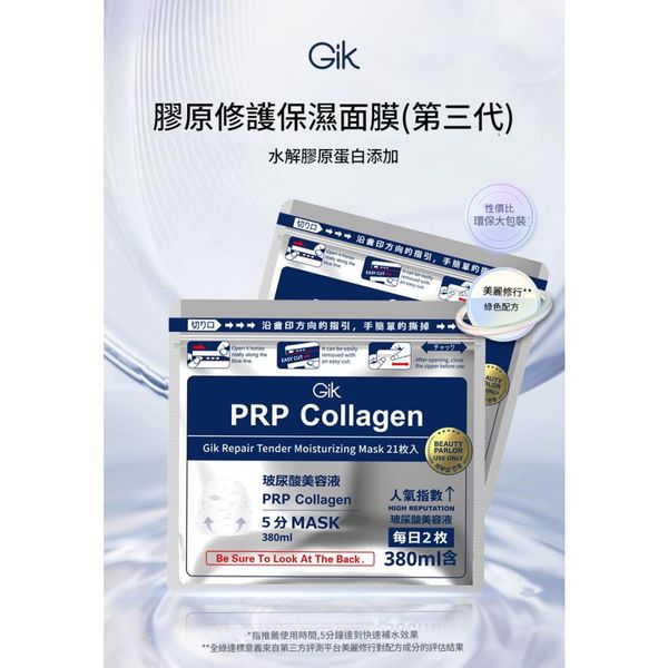 GIK 日本第三代PRP膠原修護保濕面膜(21片裝)
