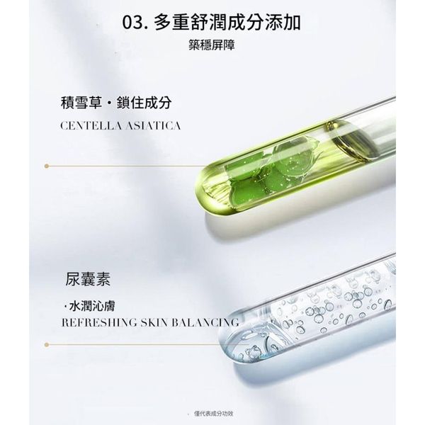 積雪草+尿囊素:舒緩泛紅、強化屏障,敏感肌友好。