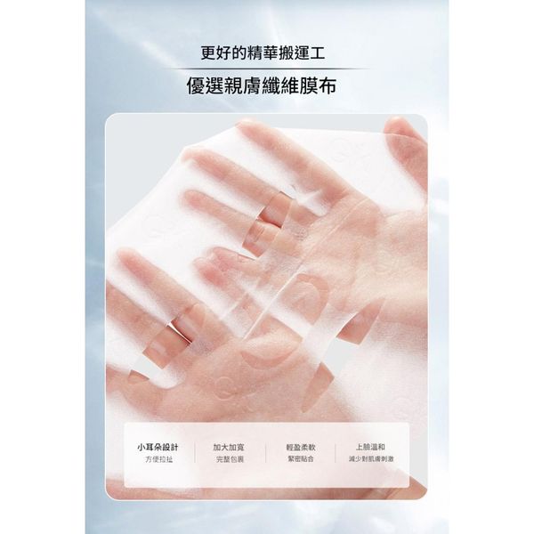 親膚纖維材質,輕薄透氣不刺激,精華液附著力提升30%。