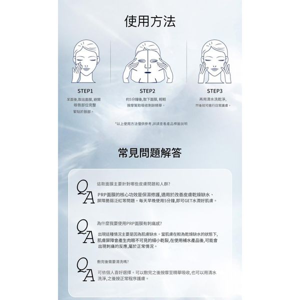 步驟:潔面→敷5分鐘→輕拍殘留精華(可免洗)。