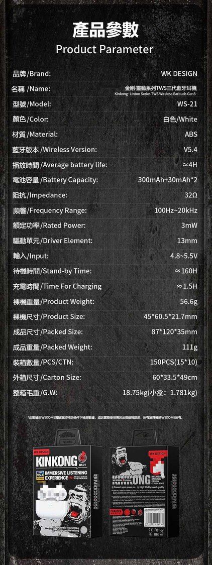 WK金剛·靈動系列TWS三代藍牙耳機WS-21