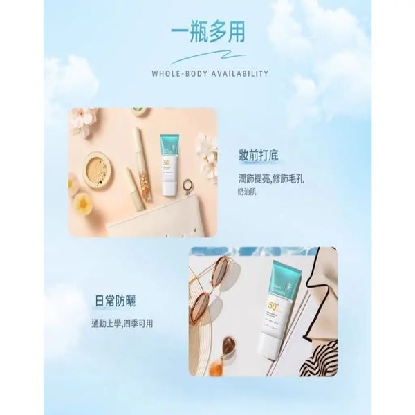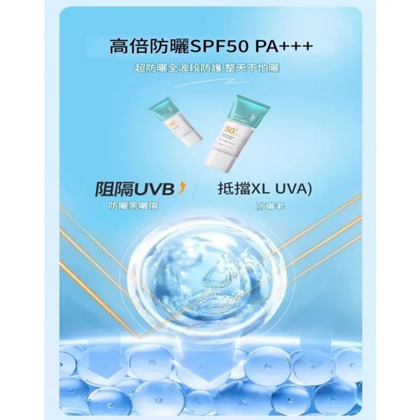 :添加鎖水成分,防曬同時滋潤肌膚,避免乾燥緊繃。