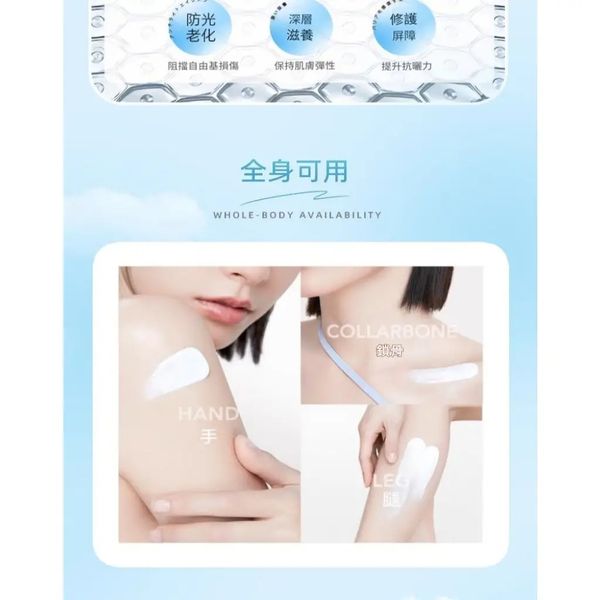:輕盈水感配方,塗抹後迅速吸收,肌膚呼吸無負擔,尤其適合油性與混合肌。
