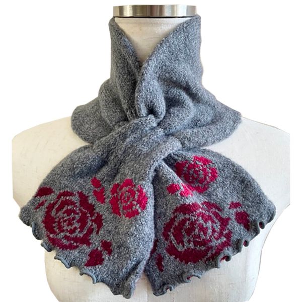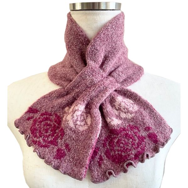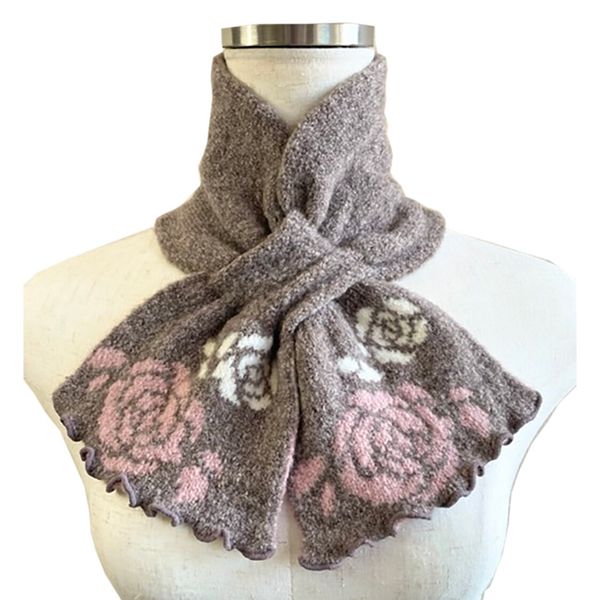🧣全新【日本製】 TERAICHI 多色玫瑰圖花案交叉插入式 Uchi 生態短圍巾/頸巾-11830698🧣