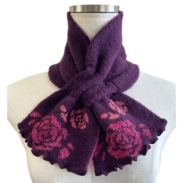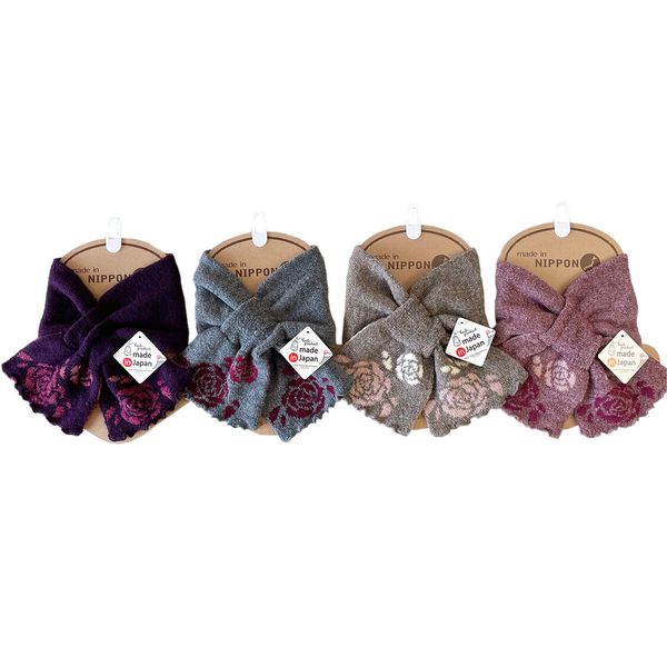 全新日本製 TERAICHI 多色玫瑰圖花案交叉插入式 Uchi 生態短圍巾/頸巾