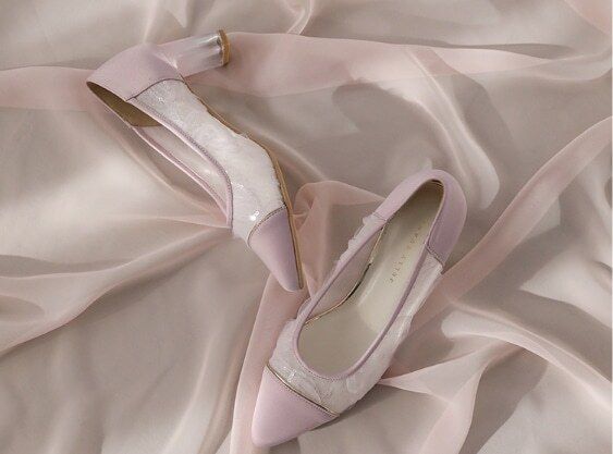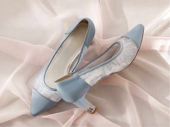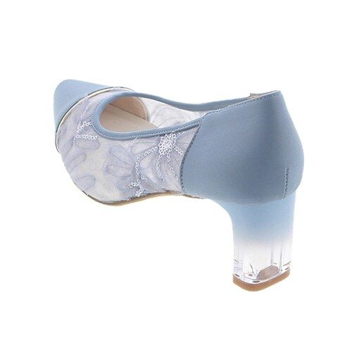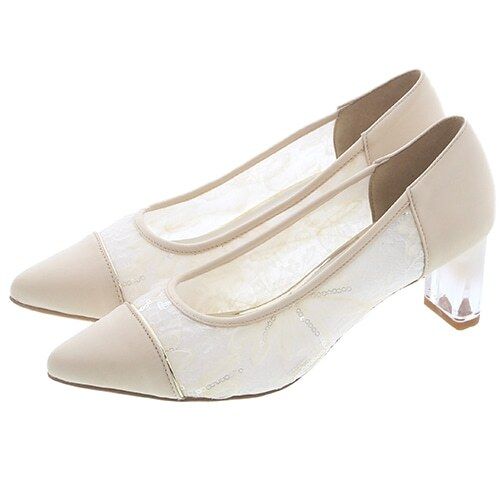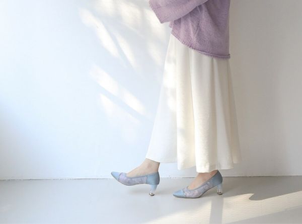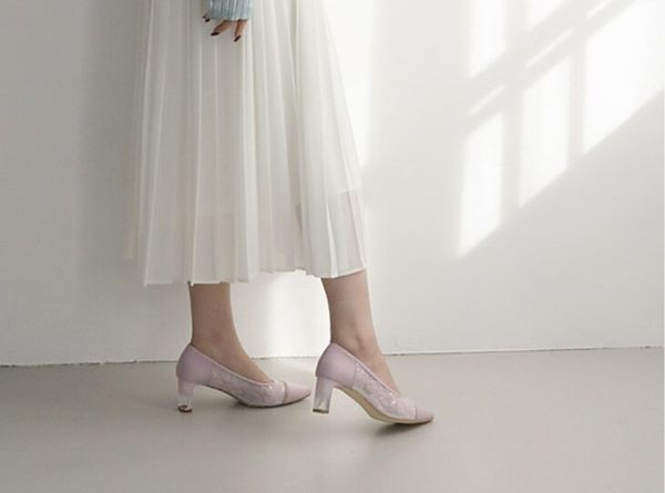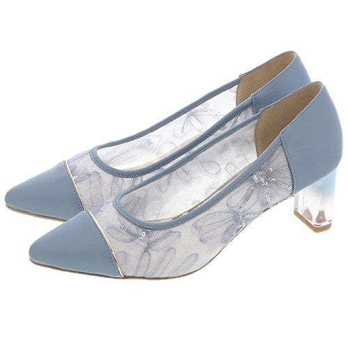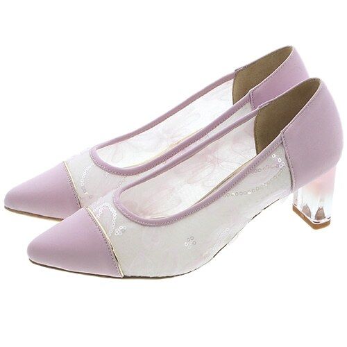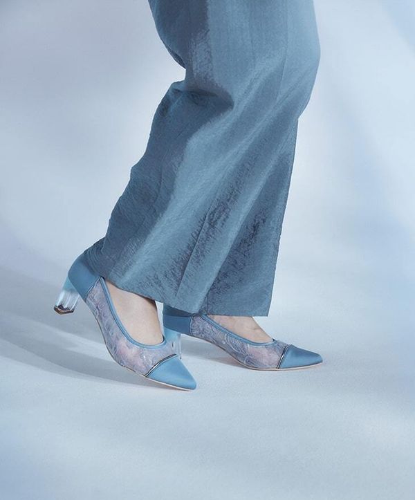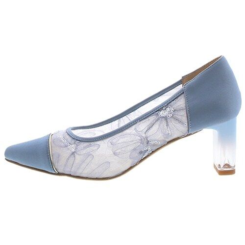 透明鞋跟高跟鞋由透明材質和織物製成。