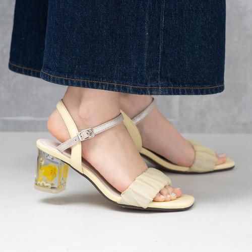 全新日本 JELLY BEANS 多色透明花跟褶皺帶高跟涼鞋-*2025新款* 204-52058