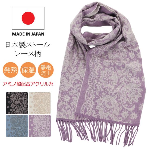 全新日本製 Lune Jumelle 多色蕾絲圖案窄披肩/圍巾/頸巾-1262730124