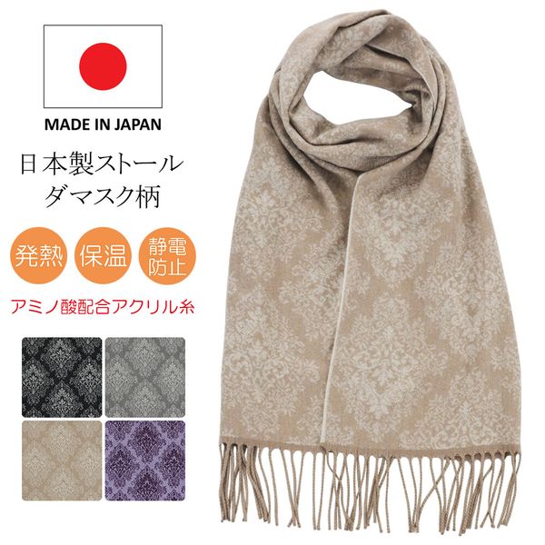 全新日本製 Lune Jumelle 多色錦緞圖案窄披肩/圍巾/頸巾-1262730224
