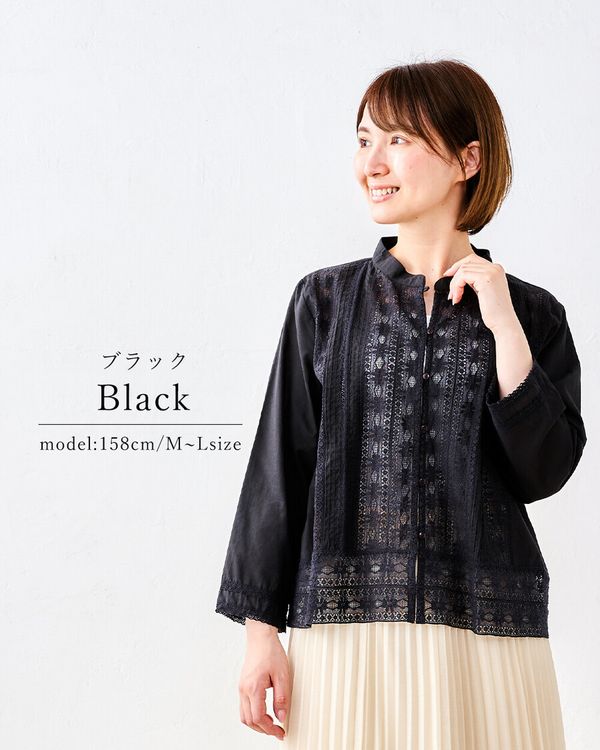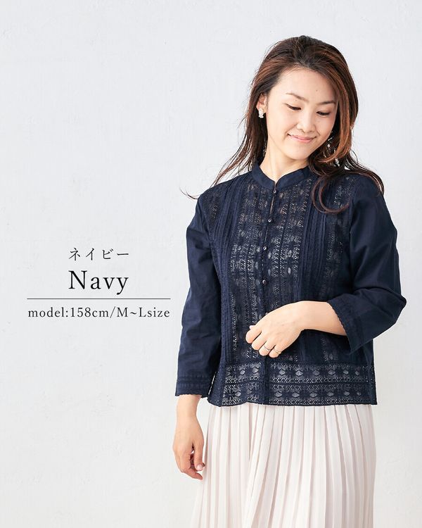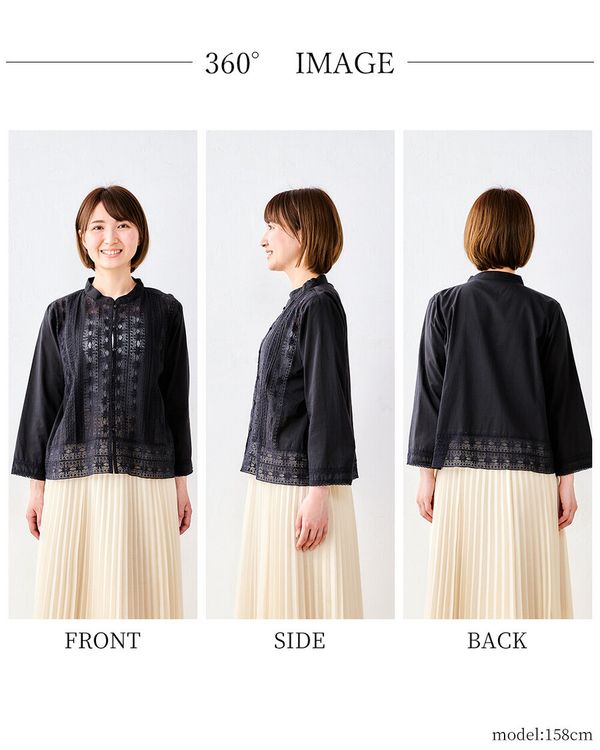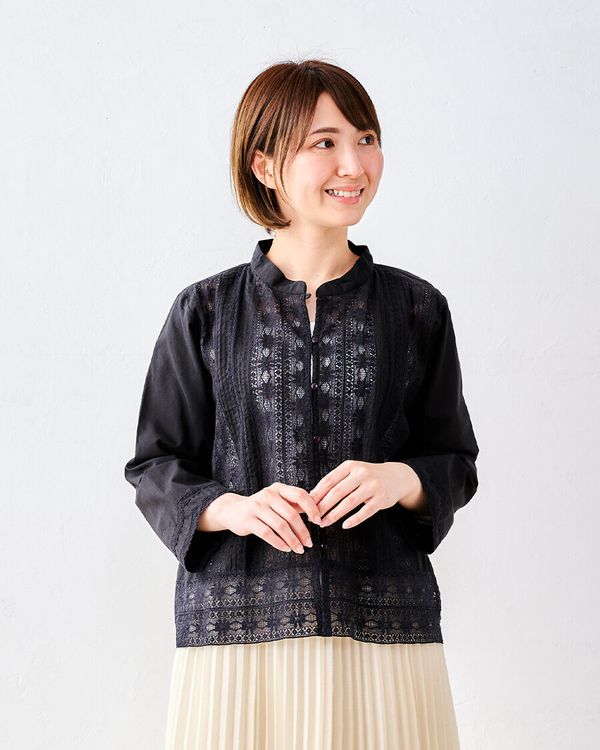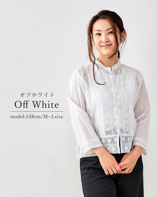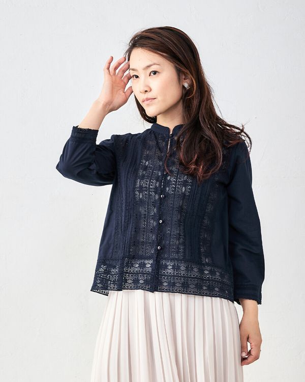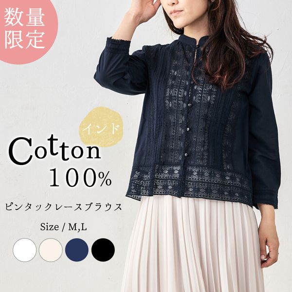 全新【日本製】S & IMPRIME [限量版/印度棉] 100%純棉蕾絲褶襯衫/上衣-13735315