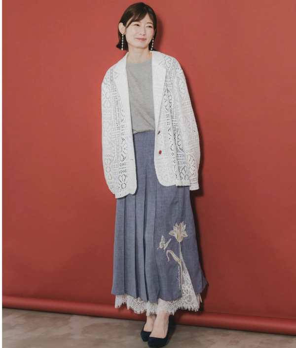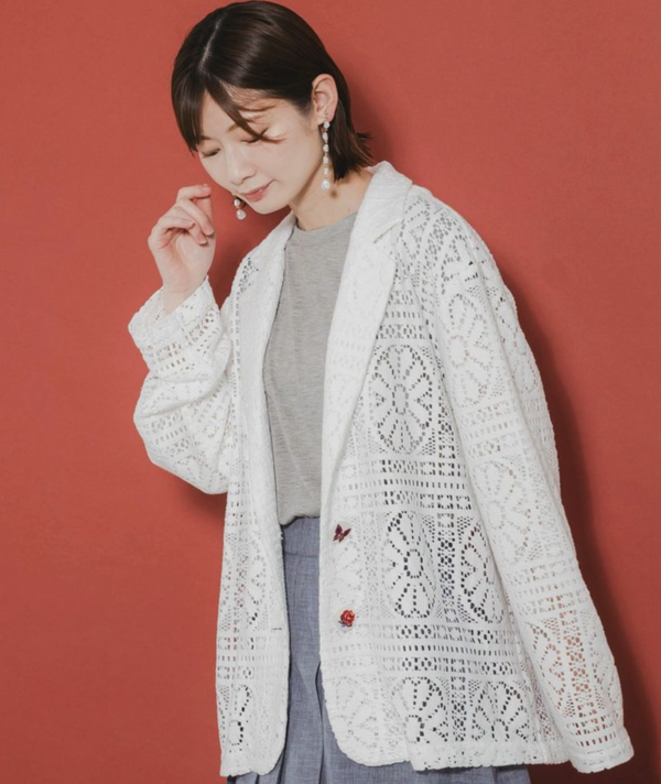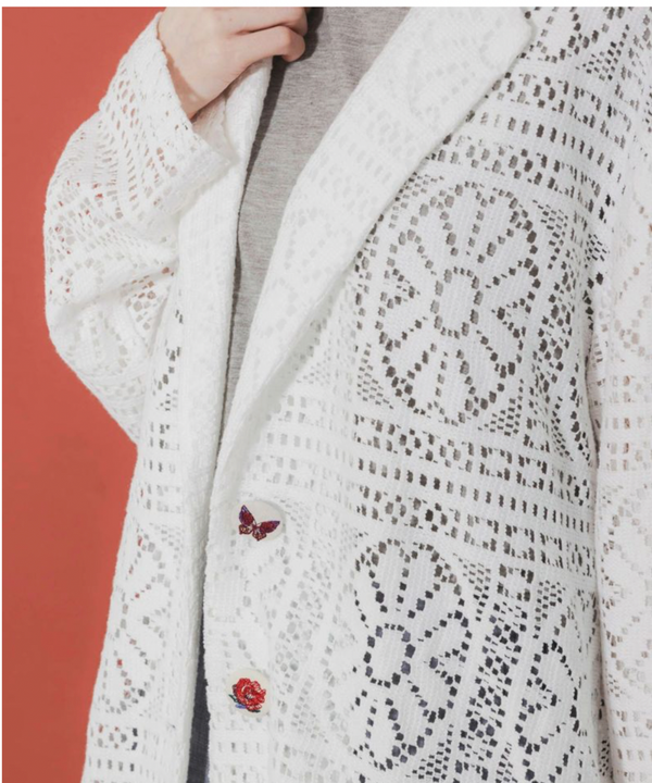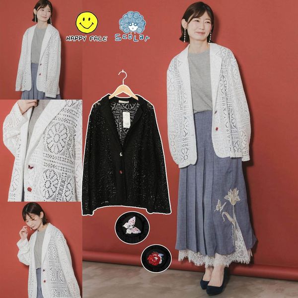 全新日本 ScoLar Hanabo日本花蝴蝶刺繡復古風格花蕾日本花蕾線外套*542264*