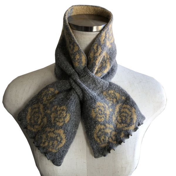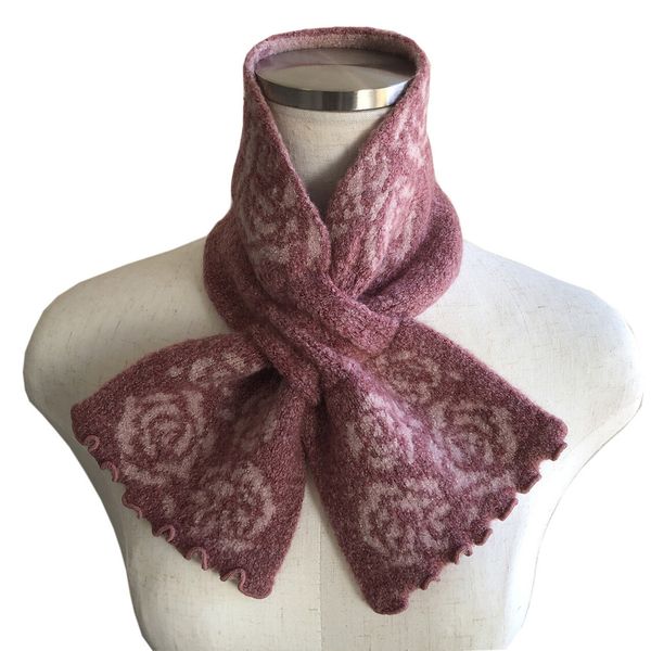 全新【日本製】TERAICHI 多色玫瑰圖案雙面插入式短圍巾/頸巾-12822575