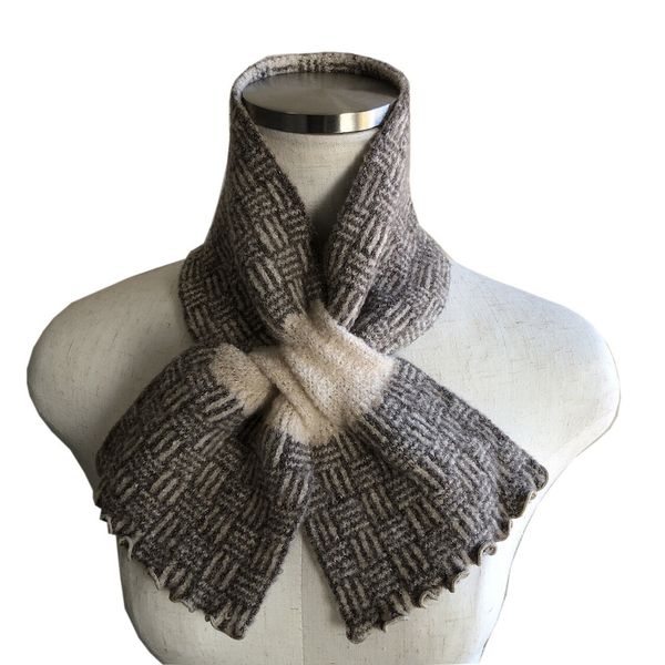 這款交叉頸部保暖器在日本製造,質地柔軟光滑,感覺像羊絨,並且是 由香川縣東川川市一家歷史悠久的針織品製造商提供, 已經經營了四代人。