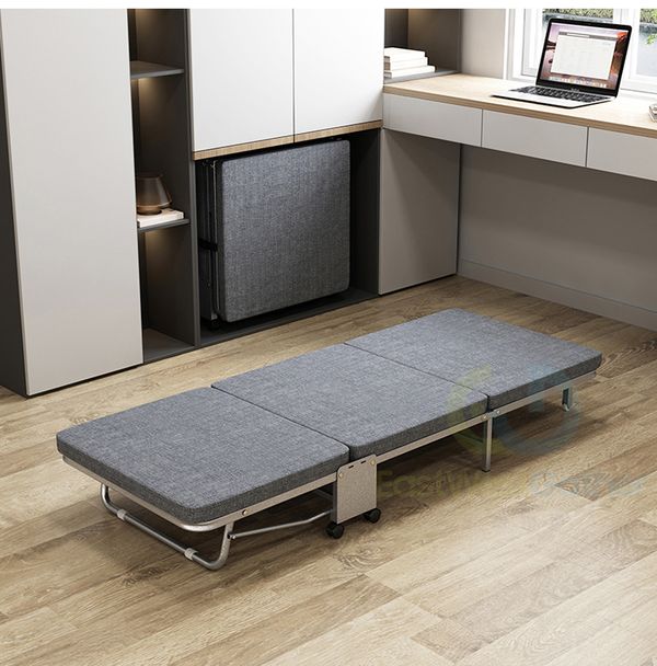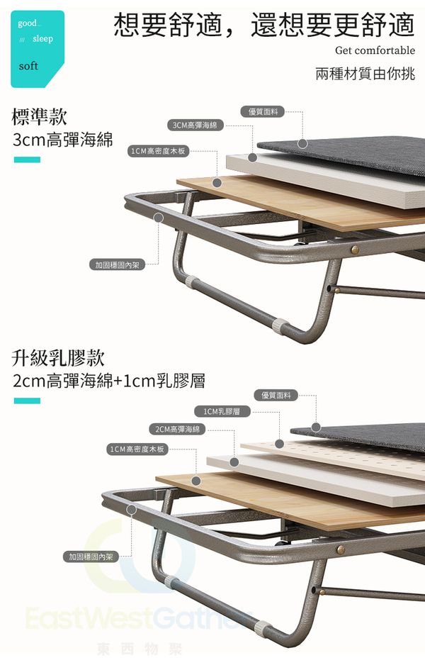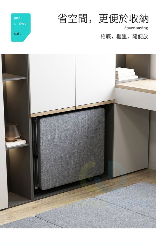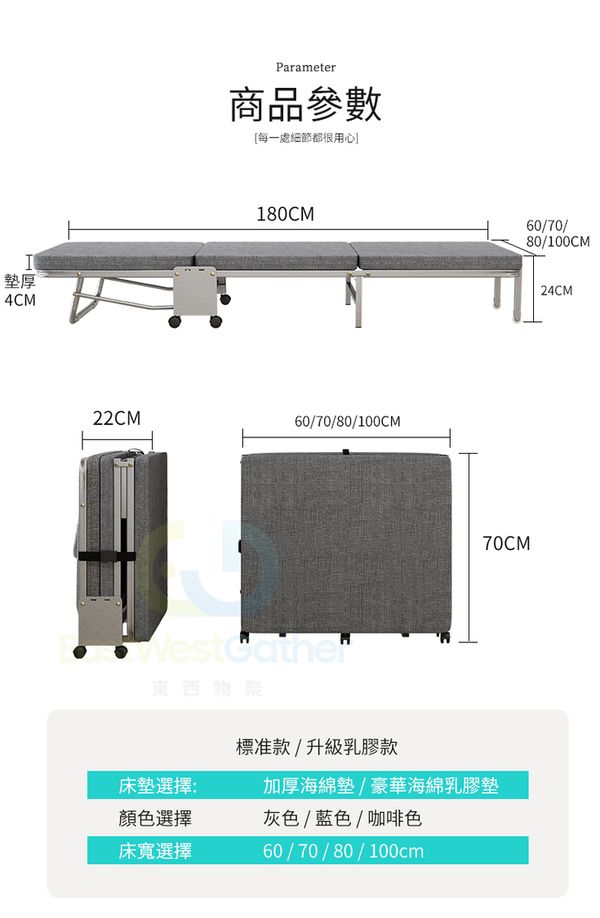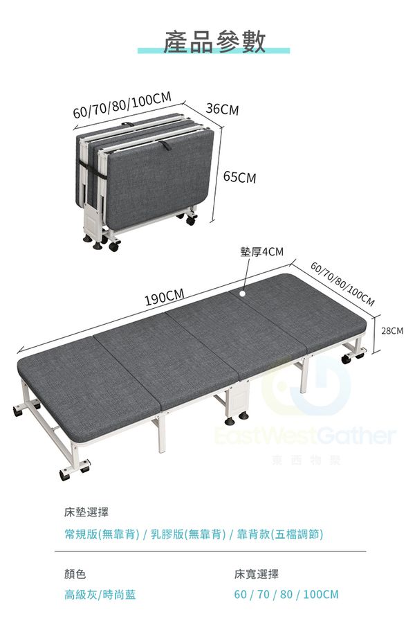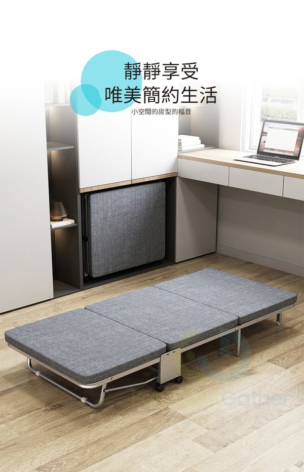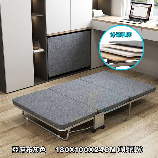 包安裝送貨100CM寬亞麻灰(升級乳膠床墊銀架)+防塵罩(三摺加厚4厘米床墊)摺疊床 C20911-12