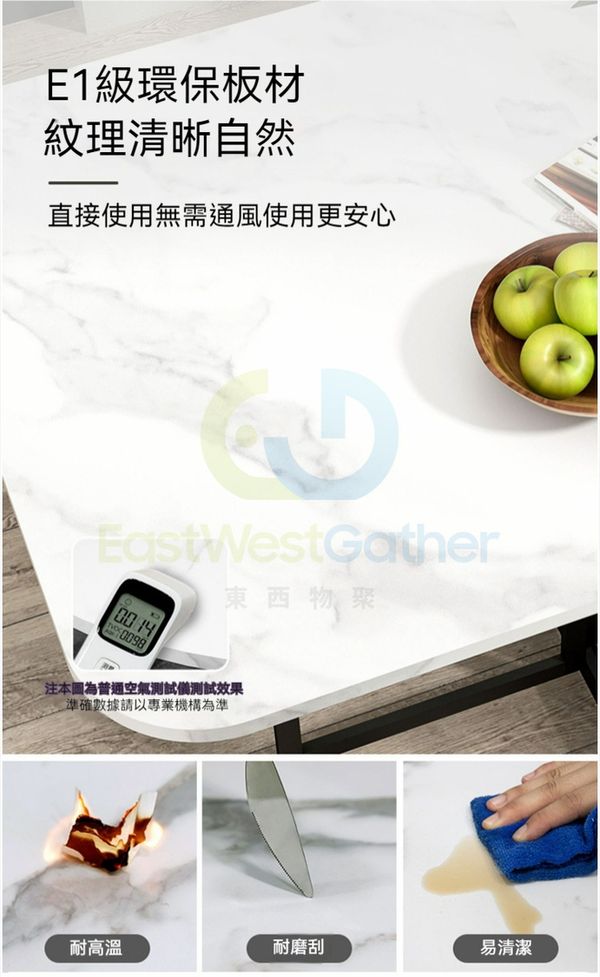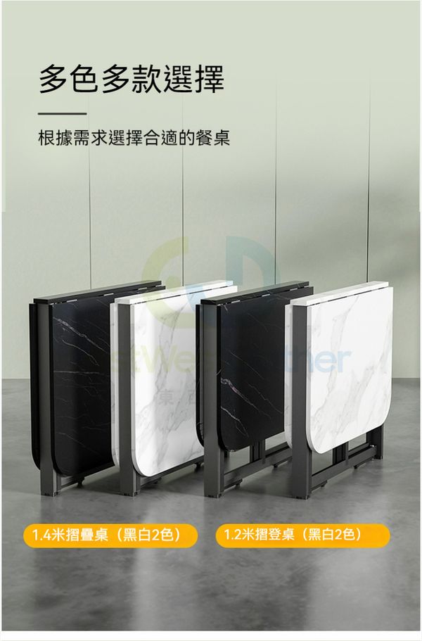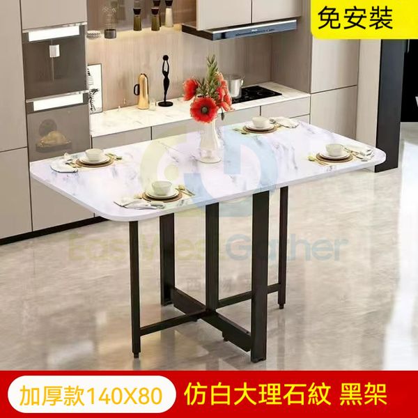 包送貨包安裝1.4m【仿白大理石纹+黑架】-折疊餐怡 C21062-36