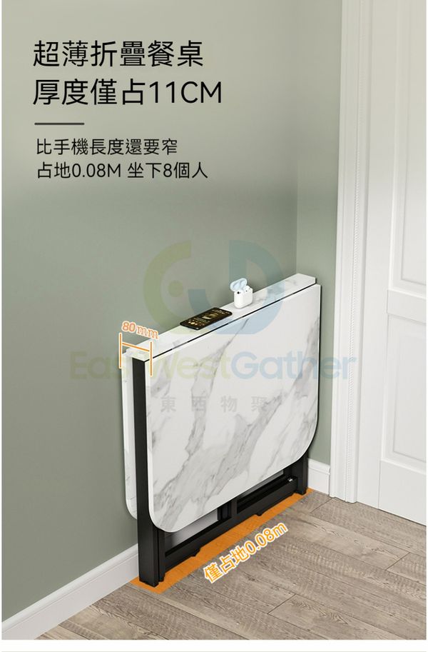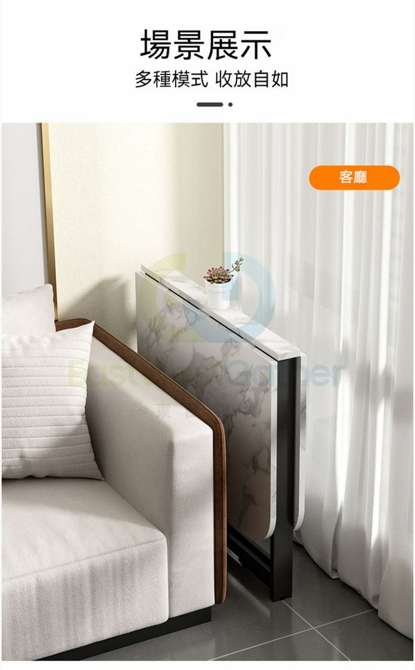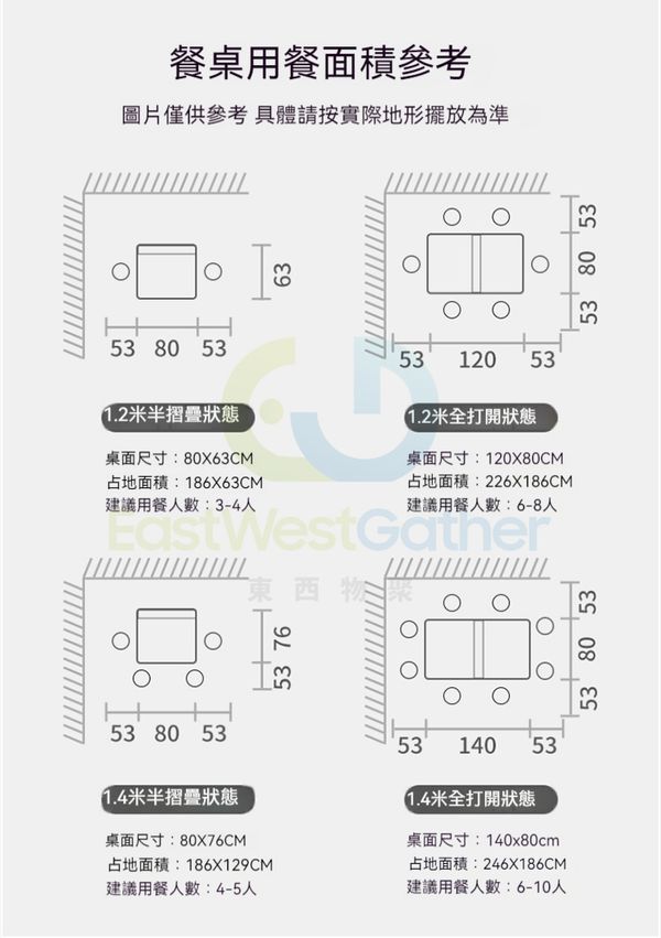 靠墙擺放支持3-4人用餐 展開後可輕鬆圍坐6-8人